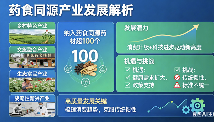 药食同源产业是我国最具特色的产业领域,兼具乡村特色产业、文旅融合产业、生态富民产业、战略性新兴产业等多重属性,在我国经济社会发展中发挥着不可替代的作用。目前,我国纳入药食同源的药材已超过100个。